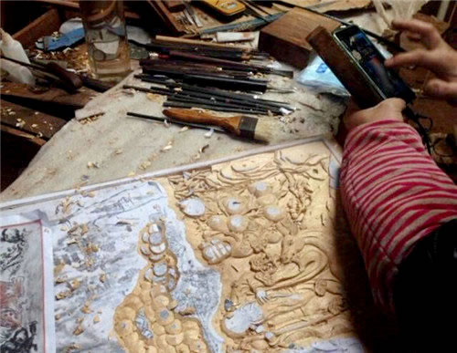 3、使用修光刀對(duì)圖案進(jìn)一步處理,這個(gè)過(guò)程又叫鏟活兒,主要是將有棱角的地方修平,突出雕刻圖案的線腳,對(duì)凹陷進(jìn)去的部分加以鏟平。